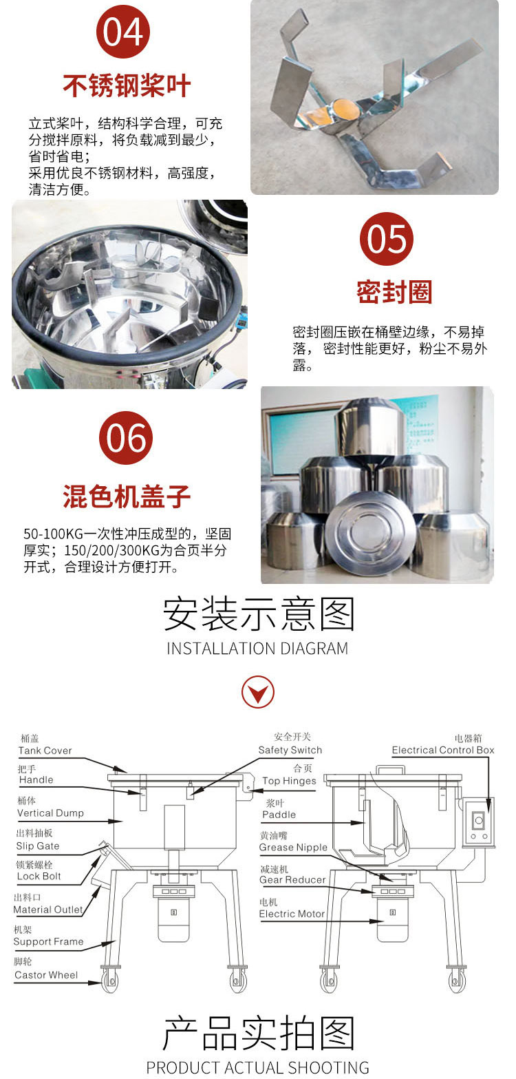 3、 短時間內完成均勻混料、低耗能、高效率;